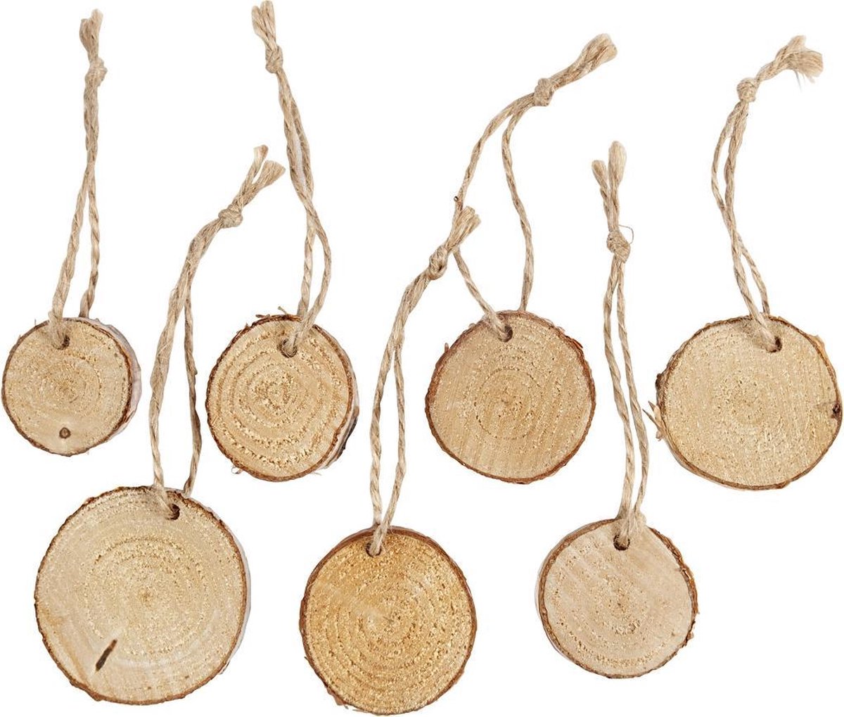 Houten schijf met ophangoog. d: 35-45 mm. dikte 7 mm. 7 stuk/ 1 doos