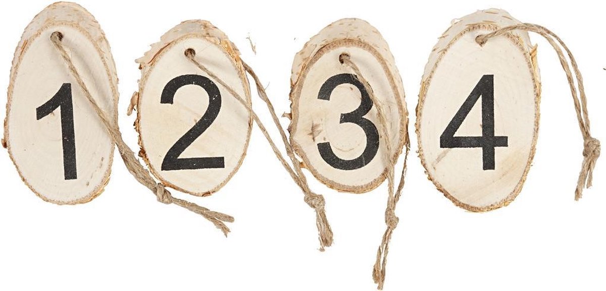 Houten schijven met adventcijfers. 4 stuk/ 1 doos