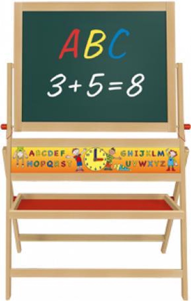 Een leuk schoolbord om te oefenen met schrijven, tekenen en letters plakken. Leuk voor op de slaapkamer of zomers in de tuin. Het grote paneel kan vast staan en draaien. Het bord is gemaakt van beukenhout en aan beide zijden kunnen magneetletters geplakt worden.
