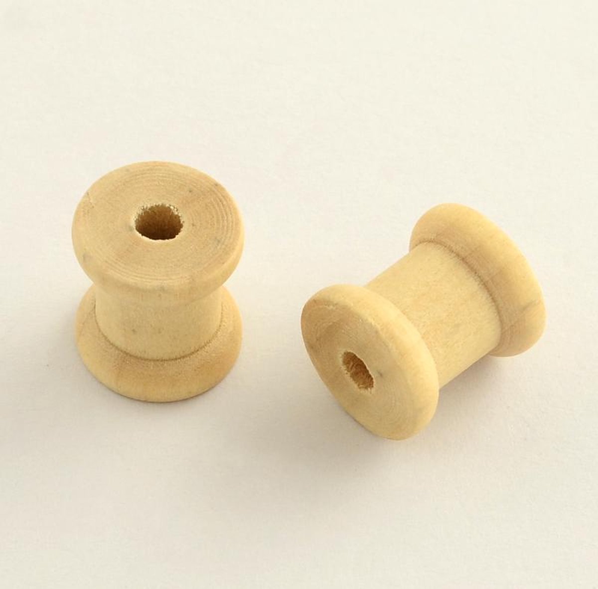 houten spoelen mini (leeg) voor lint of draad, om te knutselen 14 x 13mm, gat 4mm beige 950 stuks 730 gram