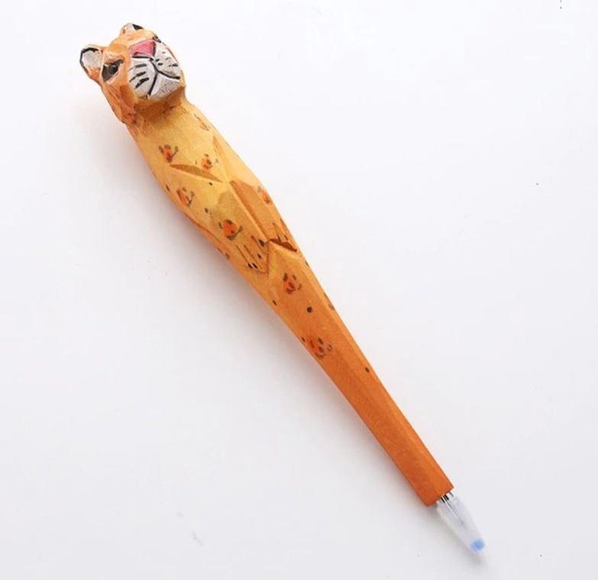 Mooie handgemaakte houten tijger pen met 10 extra vullingen. Gel pen met zwarte inkt, 0,5mm. De pen is 18 cm lang.