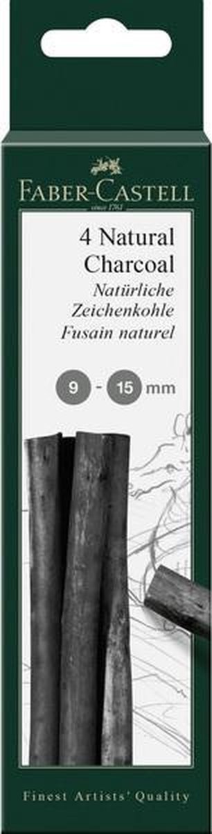 Houtskool is het oudste schets- en tekenen materiaal in de wereld. De grijs-blauwe tint glijdt zachtjes over het papier, wrijft en smeert gemakkelijk uit en kan moeiteloos worden gewist en herhaaldelijk overschreven. De blauwachtige tint heeft altijd een fascinatie gehad, zelfs bij de oude meesters. De houtskool potloden laten een veel zwarter lijn achter. Samengeperste houtskool met roet en klei geven de houtskool potloden hun diepzwarte kleur. Vet- en olievrij. Diameter 9-15mm.