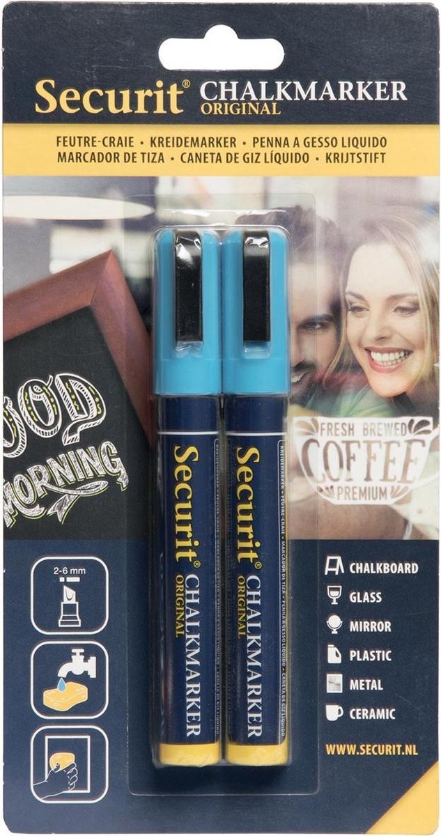 Securit krijtmarker medium, blister met 2 stuks, blauw