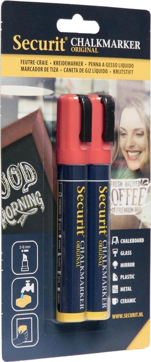 Securit krijtmarker medium, blister met 2 stuks, rood