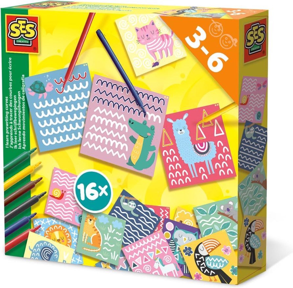 Leren schrijven begint met het maken van verschillende bewegingen. Korte en lange lijnen, golven, krullen en hoeken. Ze staan allemaal op de zestien vrolijke oefenkaarten. De kaarten hebben verschillende moeilijkheids niveaus en de oefeningen kunnen gemaakt worden met de meegeleverde gekleurde viltstiften. Ga er dus even goed voor zitten! Met een beetje concentratie en oefening verbeter je in no-time je fijne motoriek en ben je alvast goed voorbereid op leren schrijven!