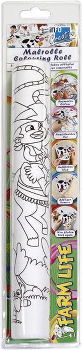 Info Creative zelfklevende tekenrol boerderijleven Plak het zelfklevende papier van de tekenrol op een tafel en wegglijden is onmogelijk. Bevestig de eindeloze tekenrol aan de wand en laat er een aantal 'kunstenaars' op los. De schilderijen kunnen daarna uitgeknipt worden en als decoratie aan de wand worden gehangen. Afmeting: 30 x 400 cm. Geschikt voor kinderen vanaf 3 jaar.