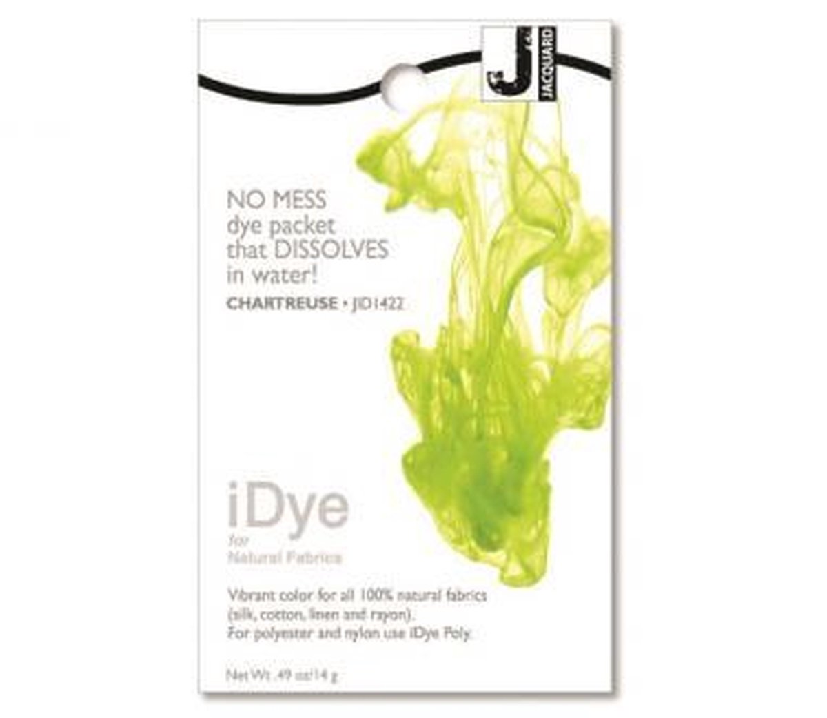 Verf complete kledingstukken met de handige oplosbare iDye zakjes van Jacquard. Laat vervaagde kledingstukken weer herleven door deze opnieuw te kleuren. iDye kan op 100% natuurlijke stoffen zoals katoen, zijde en linnen gebruikt worden doormiddel van het kledingstuk in een pan te kleuren of in de wasmachine.