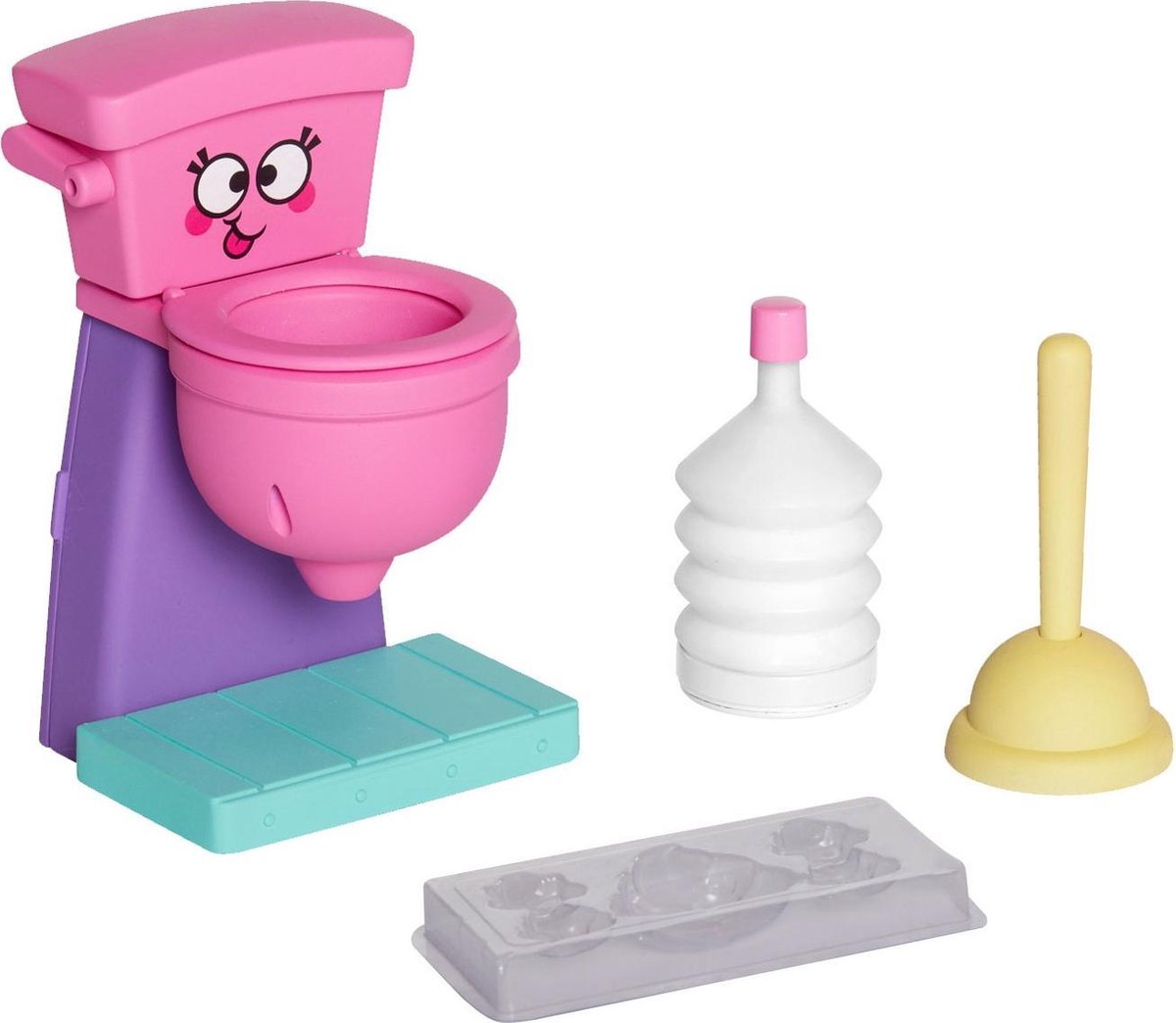 Jakks Poop chocolademaker Lachen, gieren, brullen met de Poop chocolademaker, een toiletpot waarmee je schattige en lekkere emoji's van chocolade "poep" kunt maken! Je maakt de chocoladepoepjes door chocolade te smelten, deze door het toilet te 'spoelen' en dan in vormpjes te gieten, vijf minuten in de koelkast te zetten en daarna poep-tastische accenten naar keuze toe te voegen. Lekker en leuk! Specificaties: Geslacht: junior Kleur: roze Materiaal: kunststof Afmetingen: 11,09 x 18,26 x 25,4 cm (BxDxH) Gewicht: 290 gram Leeftijd: vanaf 6 jaar Inhoud: 1 Toilet 1 Toilet-ontstopper 1 Spuitfles 1 Gietvorm