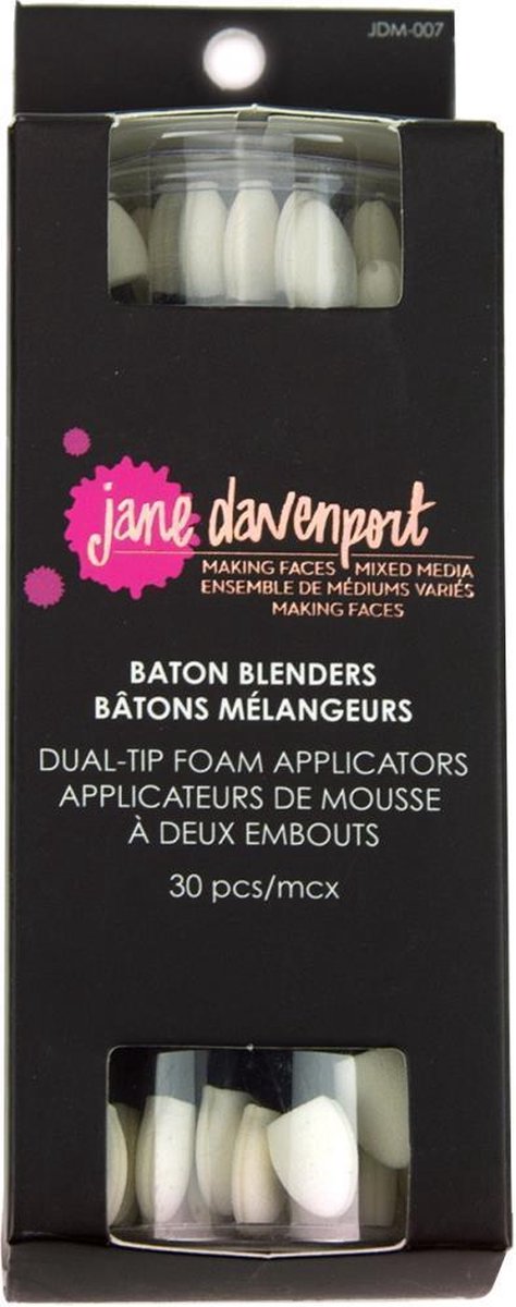 U hebt deze baton blenders nog nooit zo gezien! Dertig, extra lange, dubbelzijdige schuimapplicators zorgen ervoor dat je de stokjes omdraait en een vleugje pit toevoegt net als een Majorette! Ze worden geleverd in een handige container die op uw bureau kan worden bewaard of uw kunstjournaalavonturen kan voortzetten.