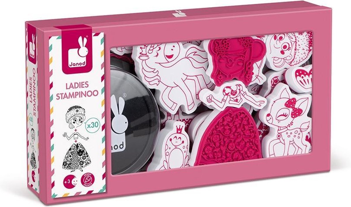 Speelgoed van schuimrubber 30 stempels en 1 stempelkussen. Voor de dromers, de verlegen meisjes en de creatievelingen, 30 stempels om een girly wereld te creëren en prachtige verhalen te verzinnen! Ontwikkel de fijne motoriek en de verbeeldingskracht bij uw kind.