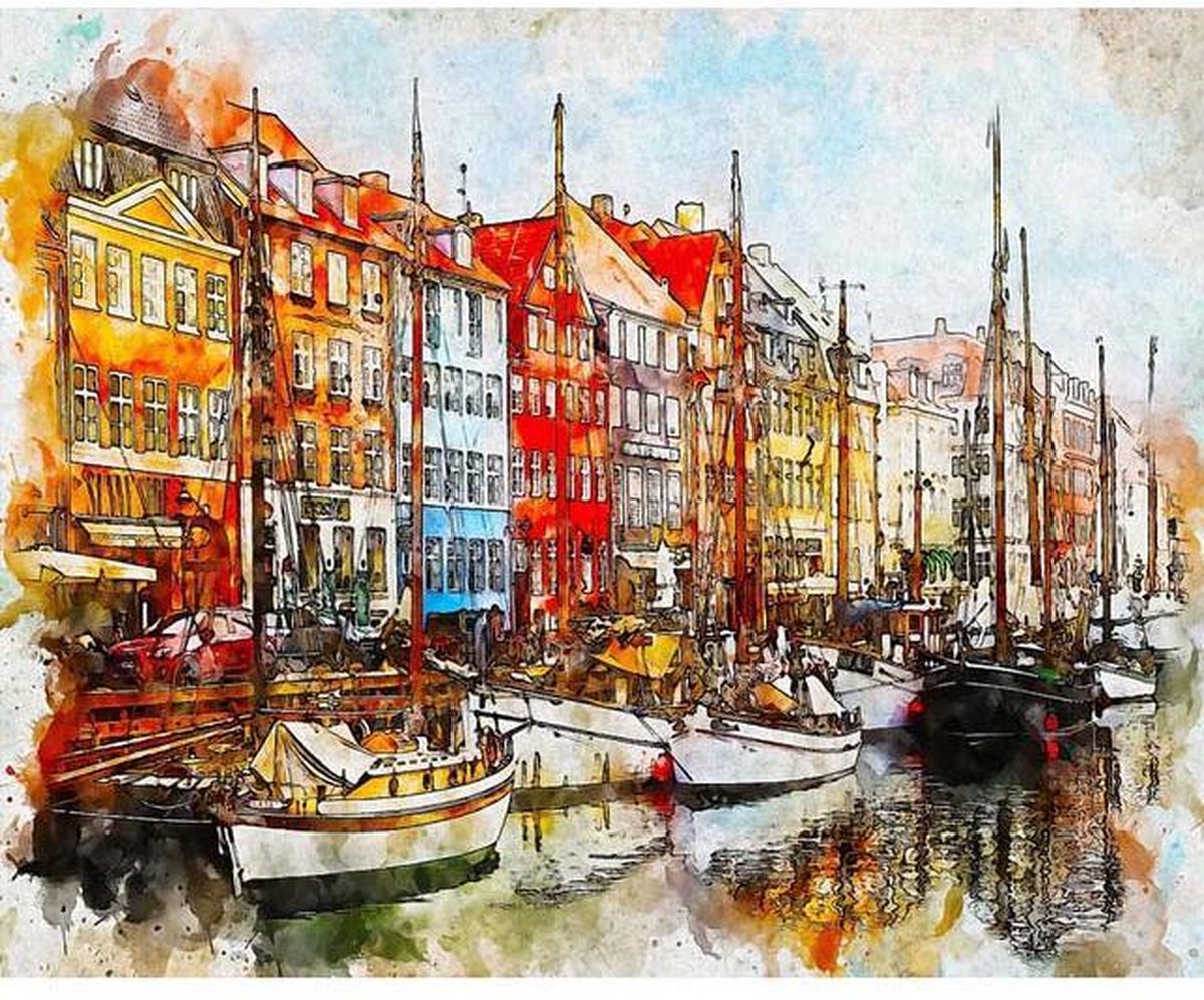 JDBOS ® Schilderen op nummer - Kleurrijke haven met boten - Paint by numbers - Verven volwassenen - 40x50 cm