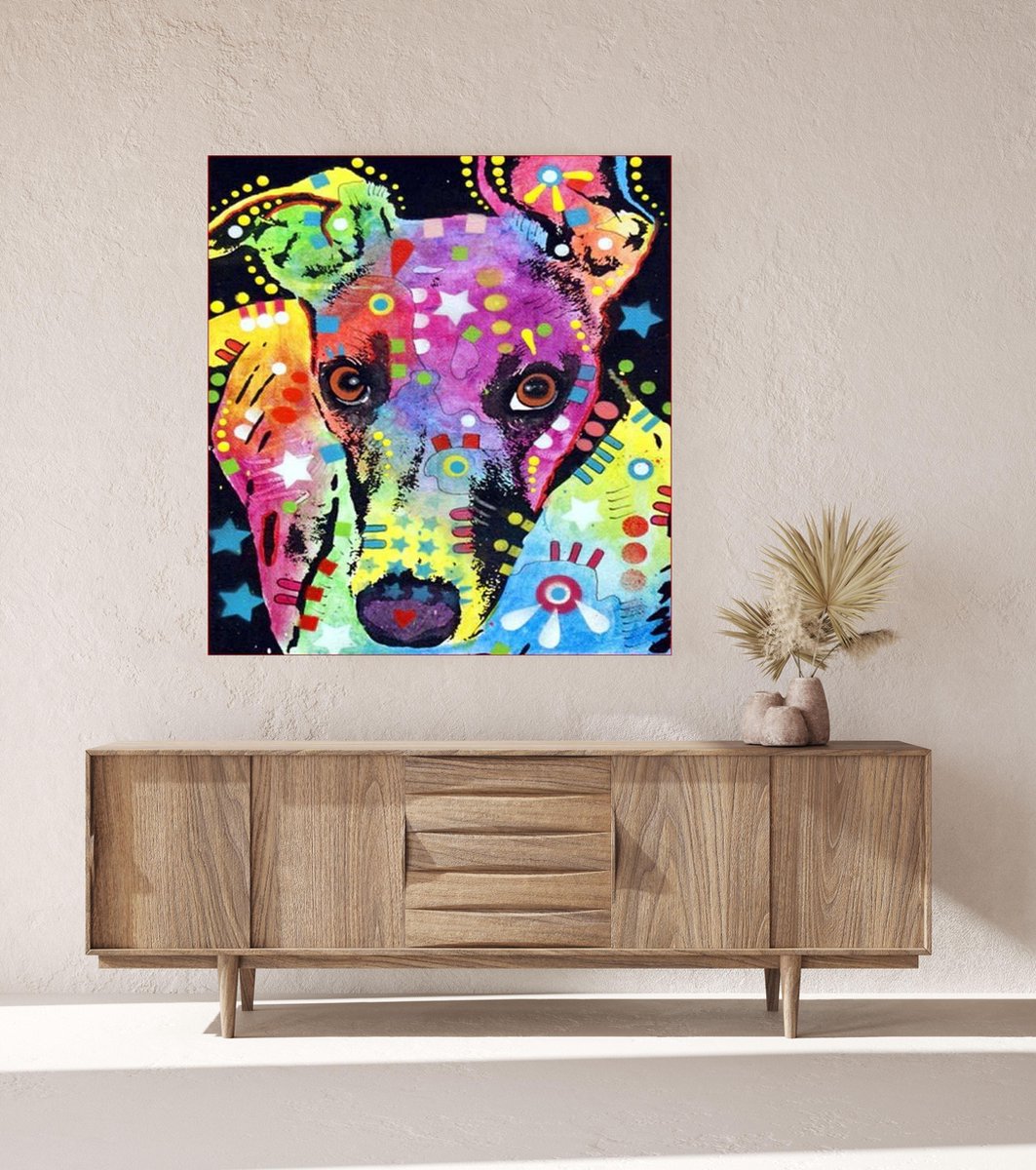 JDBOS ® Schilderen op nummer met frame (hout) - Gekleurde hond - Colorful dog - Verven volwassenen - 40x50 cm