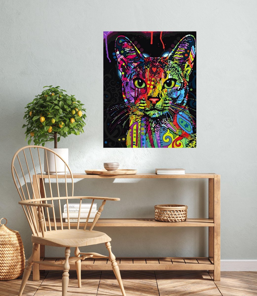 JDBOS ® Schilderen op nummer met frame (hout) - Gekleurde kat poes - Verven volwassenen - 40x50 cm