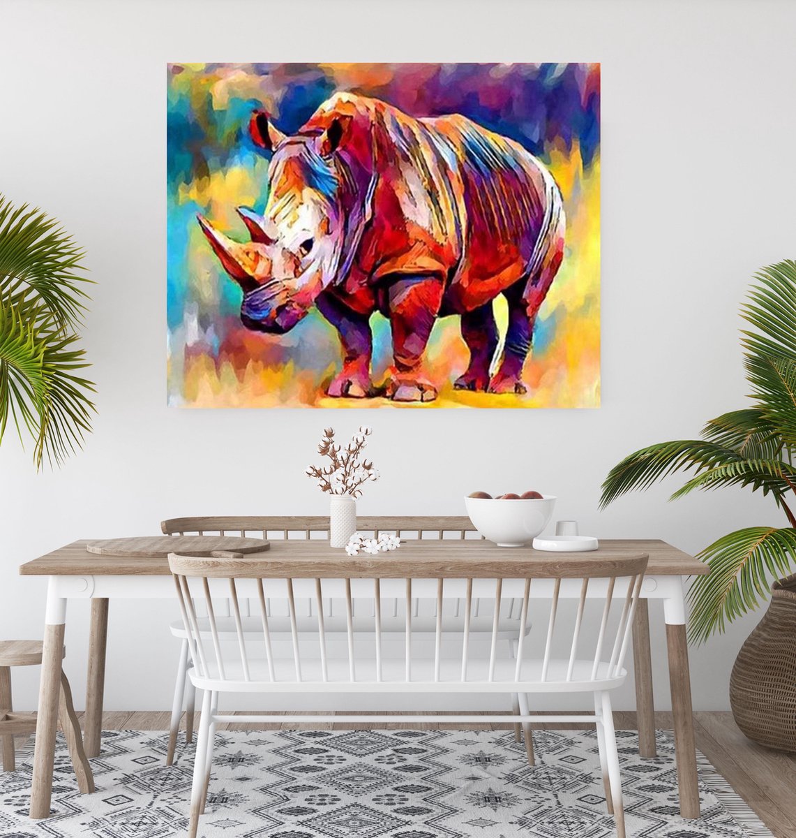 JDBOS ® Schilderen op nummer met frame (hout) - Gekleurde neushoorn - Verven volwassenen - 40x50 cm