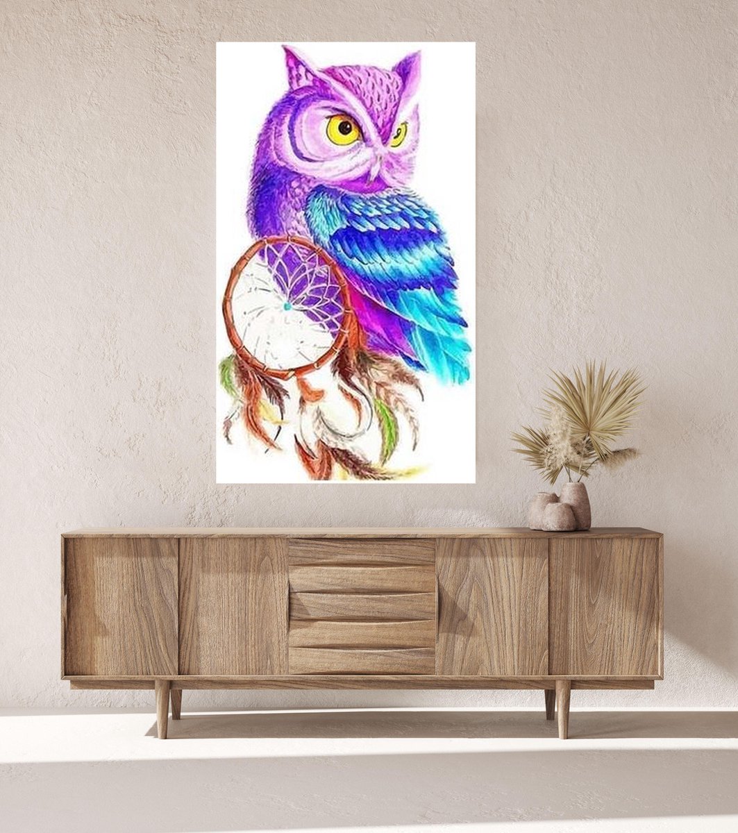 JDBOS ® Schilderen op nummer met frame (hout) - Gekleurde uil - Dromenvanger - Verven volwassenen - 40x50 cm