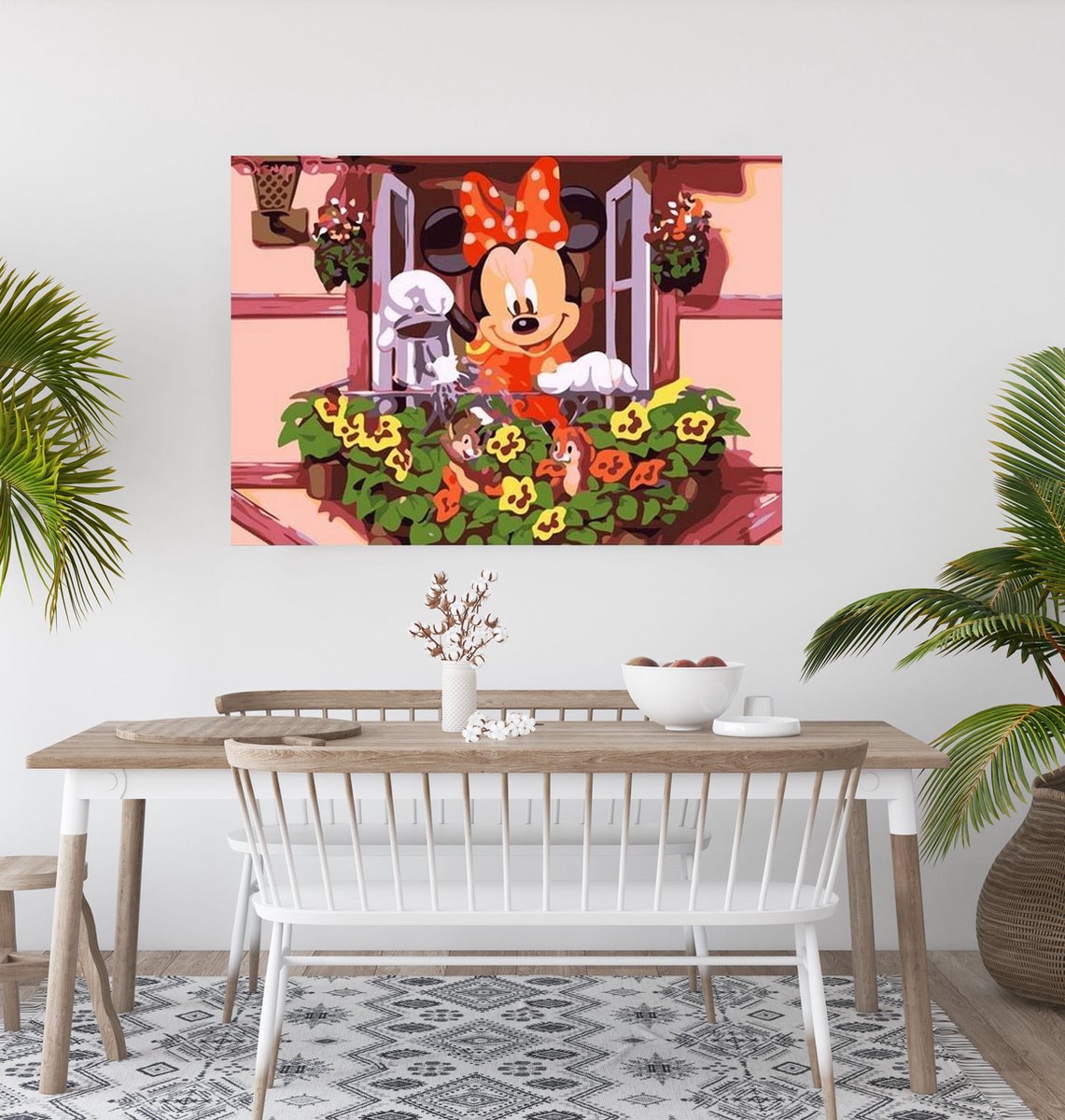 JDBOS ® Schilderen op nummer met frame (hout) - Mickey Mouse op het balkon - Verven volwassenen - 40x50 cm