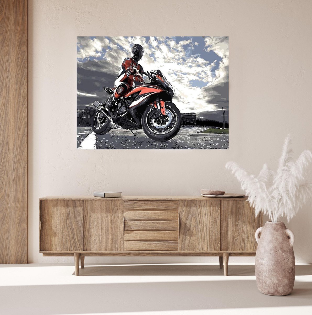 JDBOS ® Schilderen op nummer met frame (hout) - Motor met motorrijder - Verven volwassenen - 40x50 cm