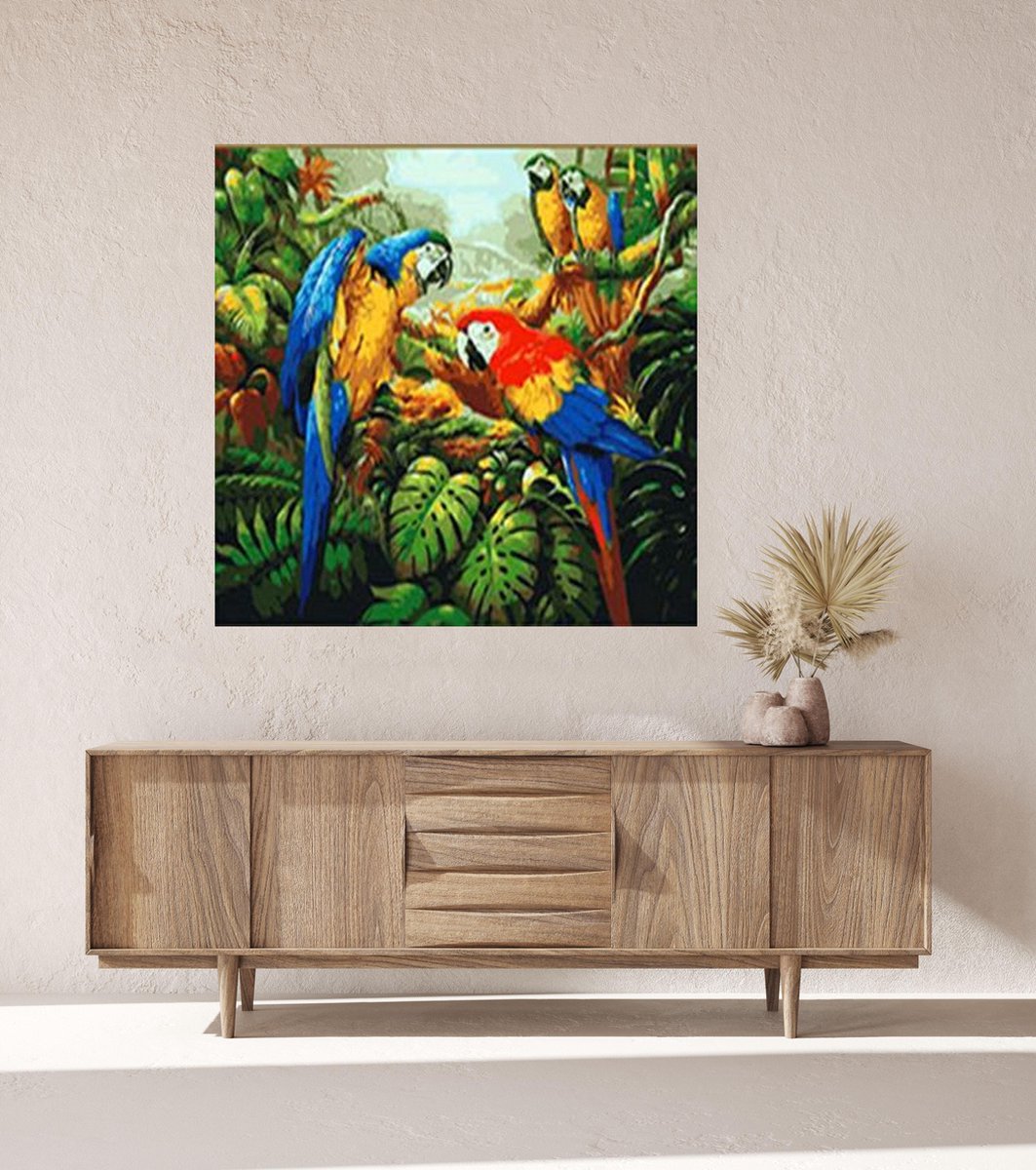 JDBOS ® Schilderen op nummer met frame (hout) - Papegaai in de jungle - Papegaaien - Verven volwassenen - 40x50 cm