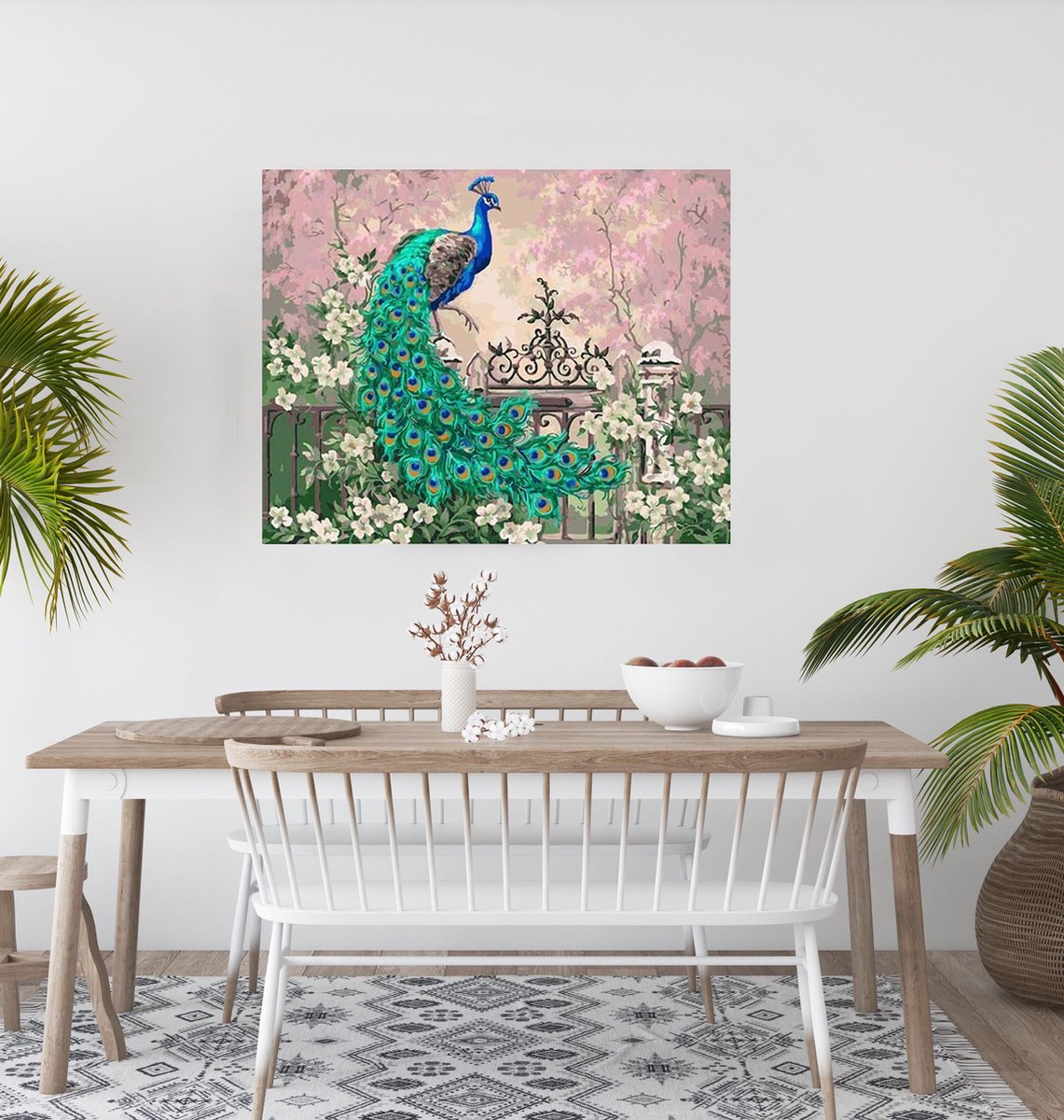 JDBOS ® Schilderen op nummer met frame (hout) - Pauw tussen de bloemen - Verven volwassenen - 40x50 cm