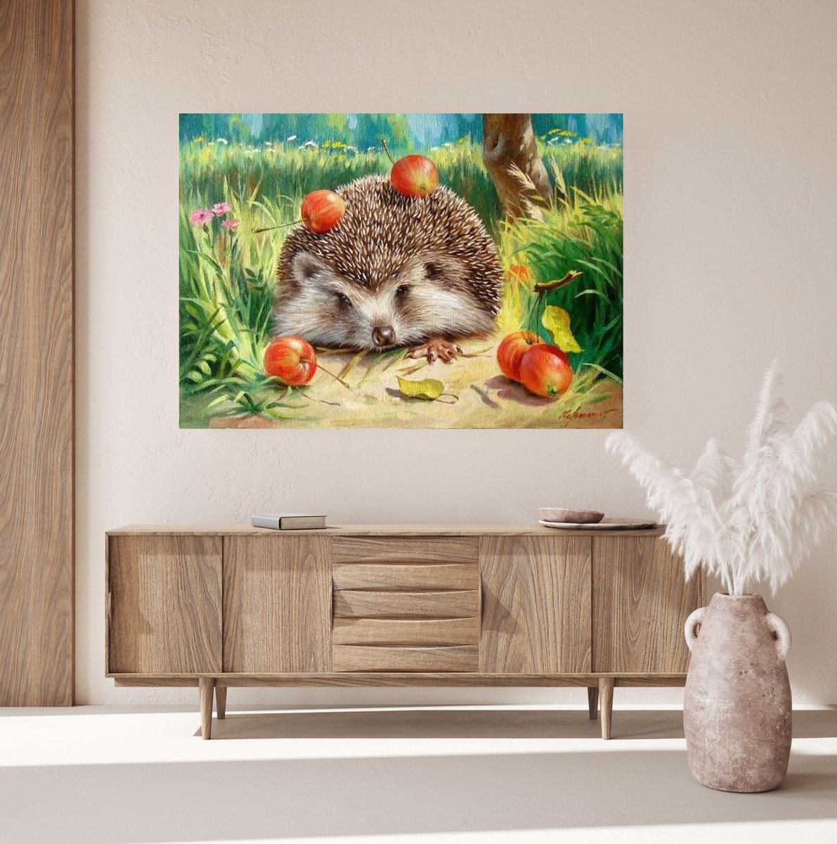 JDBOS ® Schilderen op nummer met frame (hout) - Schattige egel tussen de kersen - Verven volwassenen - 40x50 cm