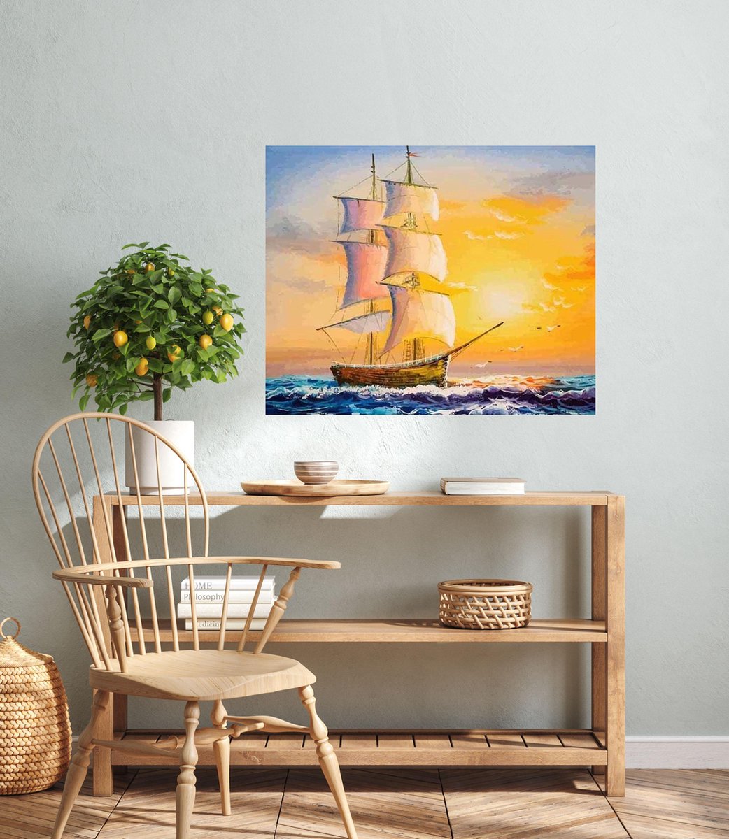 JDBOS ® Schilderen op nummer met frame (hout) - Schip op zee - Zonsondergang - Verven volwassenen - 40x50 cm