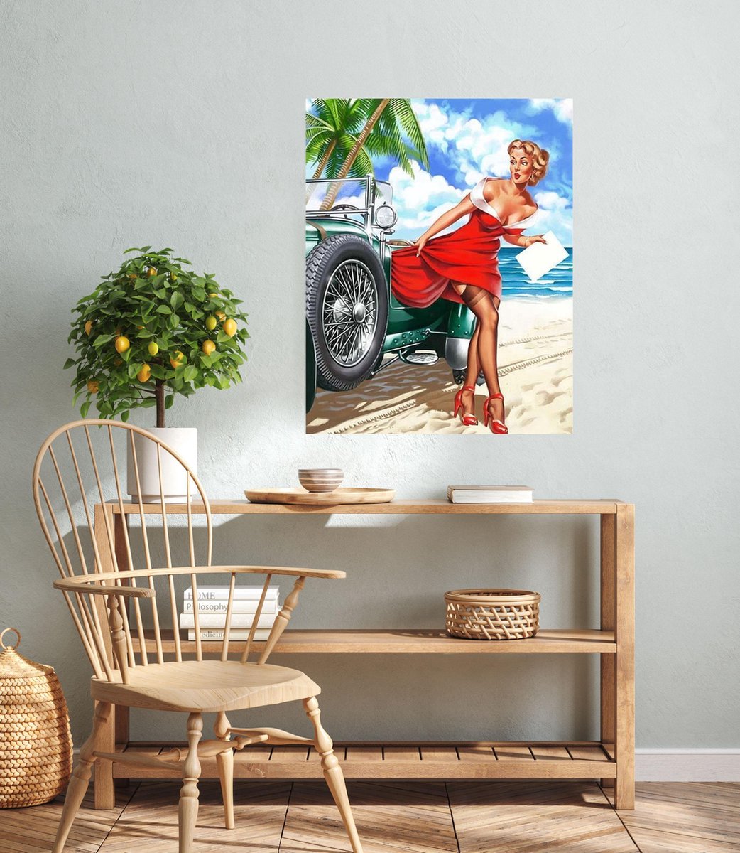 JDBOS ® Schilderen op nummer met frame (hout) - Sexy vrouw met jeep – Strand - Verven volwassenen - 40x50 cm