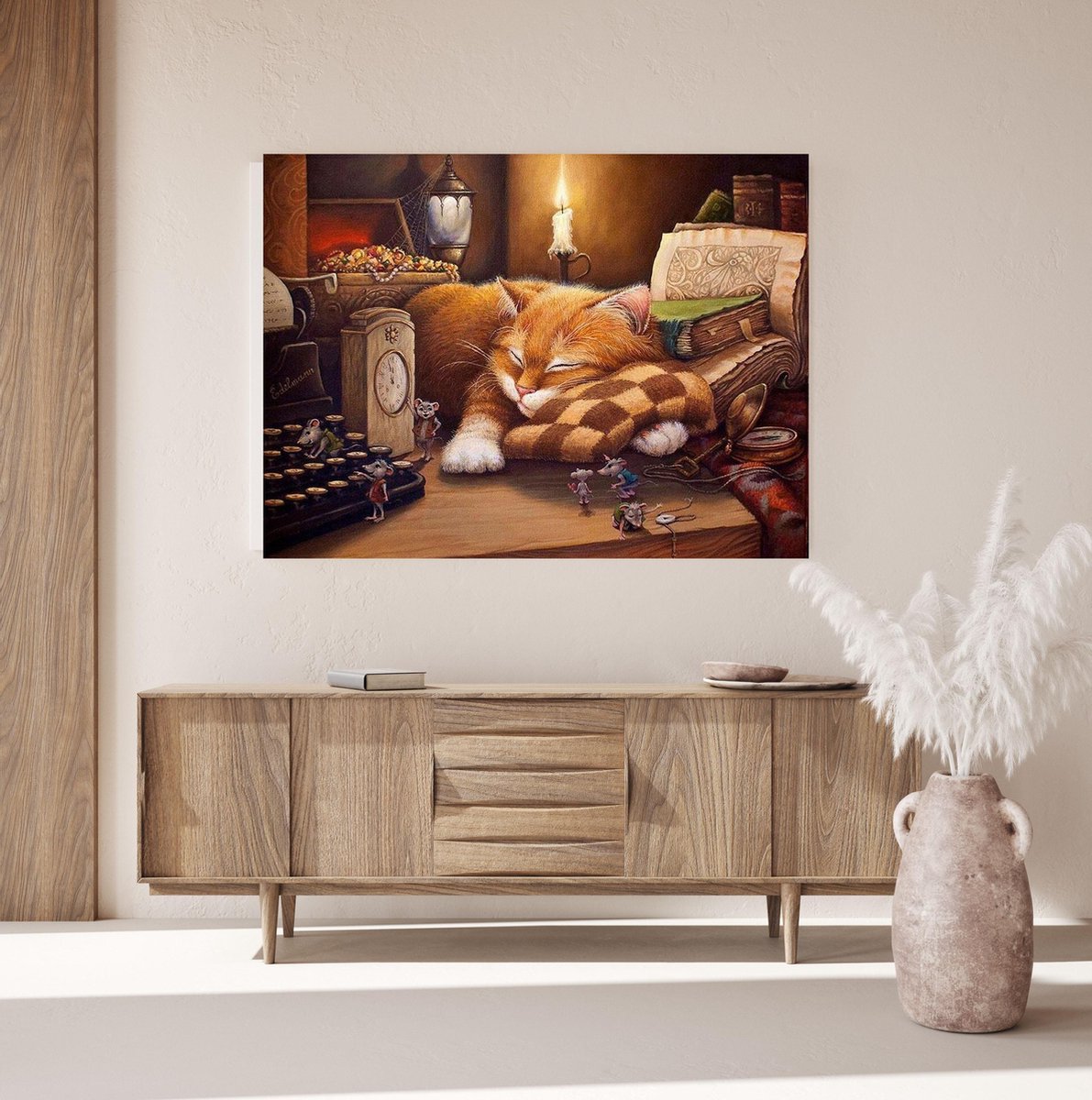 JDBOS ® Schilderen op nummer met frame (hout) - Slapende kat bij kaarslicht - Verven volwassenen - 40x50 cm