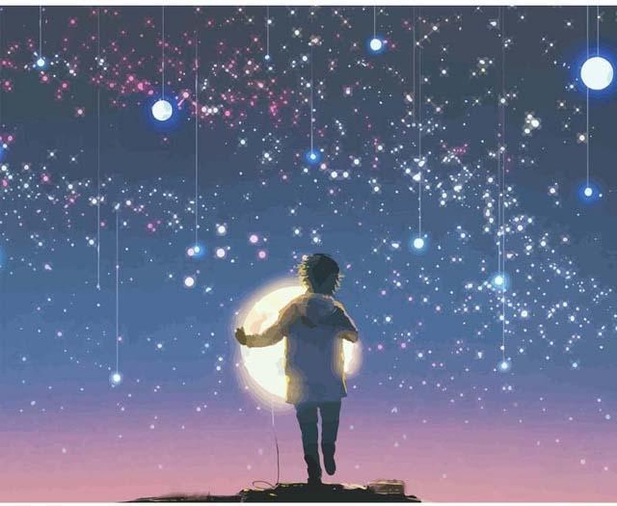 JDBOS ® Schilderen op nummer - Omhelzing van de maan - Sterren - Paint by numbers - Verven volwassenen - 40x50 cm