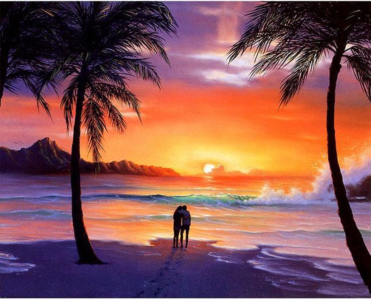 JDBOS ® Schilderen op nummer - Zonsondergang met stel op het strand - Paint by numbers - Verven volwassenen - 40x50 cm