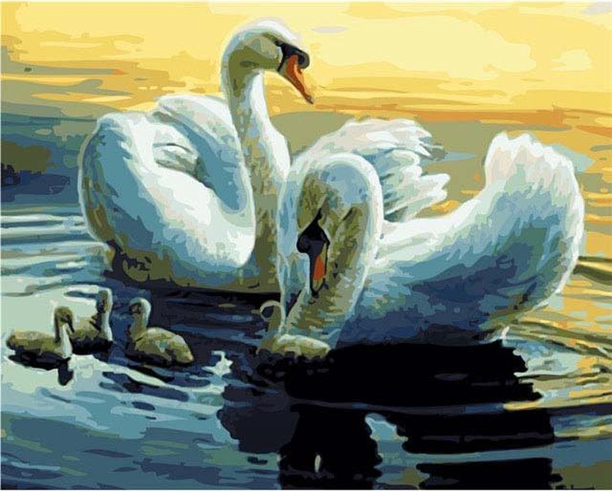 JDBOS ® Schilderen op nummer - Zwanen familie met pasgeboren babyzwanen - Paint by numbers - Verven volwassenen - 40x50 cm