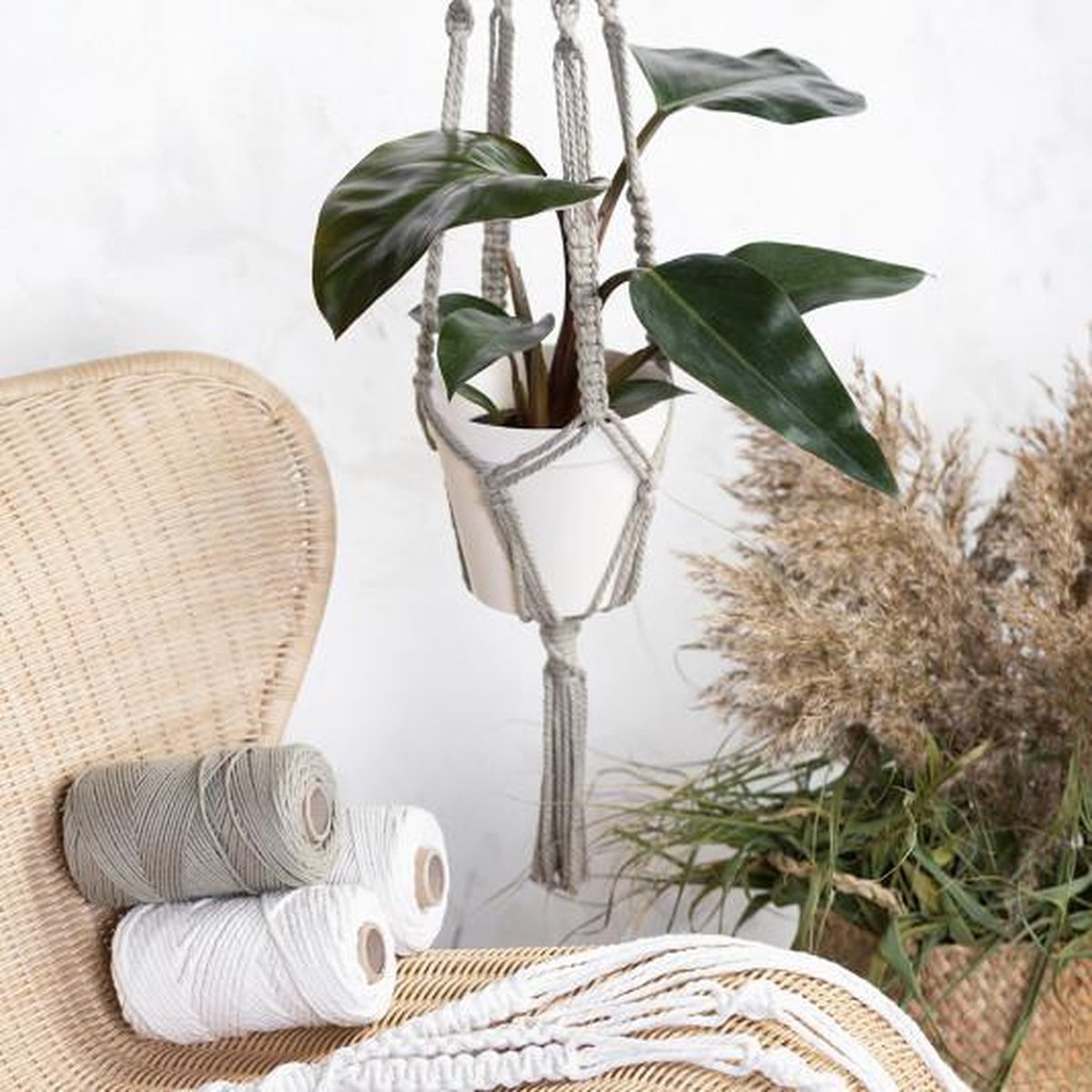 Dit pakket is zeer uitgebreid met mooie producten. De instructies zijn perfect gemaakt zodat de bijgeleverde bloempot (plastic) er in past. Macramé is een eeuwenoude knooptechniek die weer helemaal terug is en erg mooi staat in ieder interieur. Maak je eigen plantenhanger met de knopen die jij wilt. Het pakket zit in een leuke geschenktas. De kleur van deze plantenhanger is te zien aan de foto van de wol. Inhoud: Macramé koord Stevige houten ring om het geheel op te hangen Bloempot (13,5 cm x 15,2 cm. Duidelijke instructies nederlandstalig