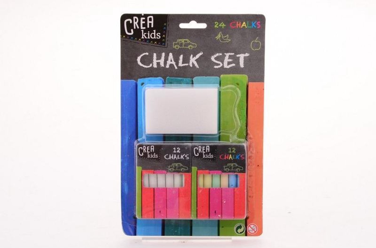Johntoy Crea Kids schoolbordkrijtjes Met deze leuke set schoolbordkrijtjes maak jij de leukste en mooiste tekeningen. De set bestaat uit 12 witte krijtjes en 12 kleurrijke krijtjes, zo heb je in totaal 24 krijtjes. Specificaties: Kleur: multicolor Materiaal: krijt Geslacht: junior Afmeting: 16 x 2 x 25 cm Leeftijd: vanaf 3 jaar Inhoud: 24 Schoolbordkrijtjes