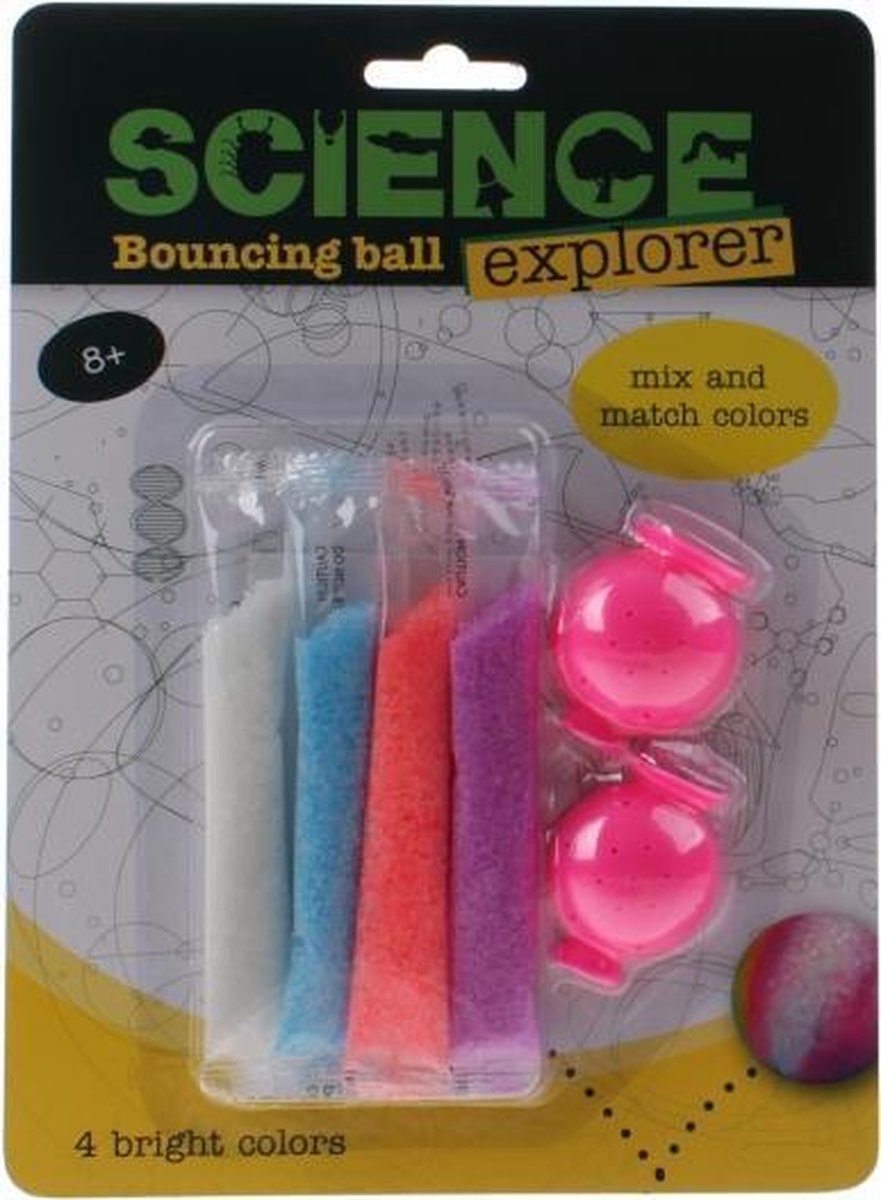 Johntoy Science Explorer Maak jouw eigen stuiterbal met deze leuke set van Johntoy. Schud de poeder van de gewenste kleuren in de gietvorm en schud voorzichtig op en neer. Plaats vervolgens de gietvorm enkele minuten in een bakje warm water. Na vijf minuten open je de gietvorm en heb je een coole stuiterbal. Specificaties: Kleur: multicolor Geslacht: junior Materiaal: kunststof Leeftijd: 8+ jaar Inhoud: 4 Staafjes poeder 1 Gietvorm