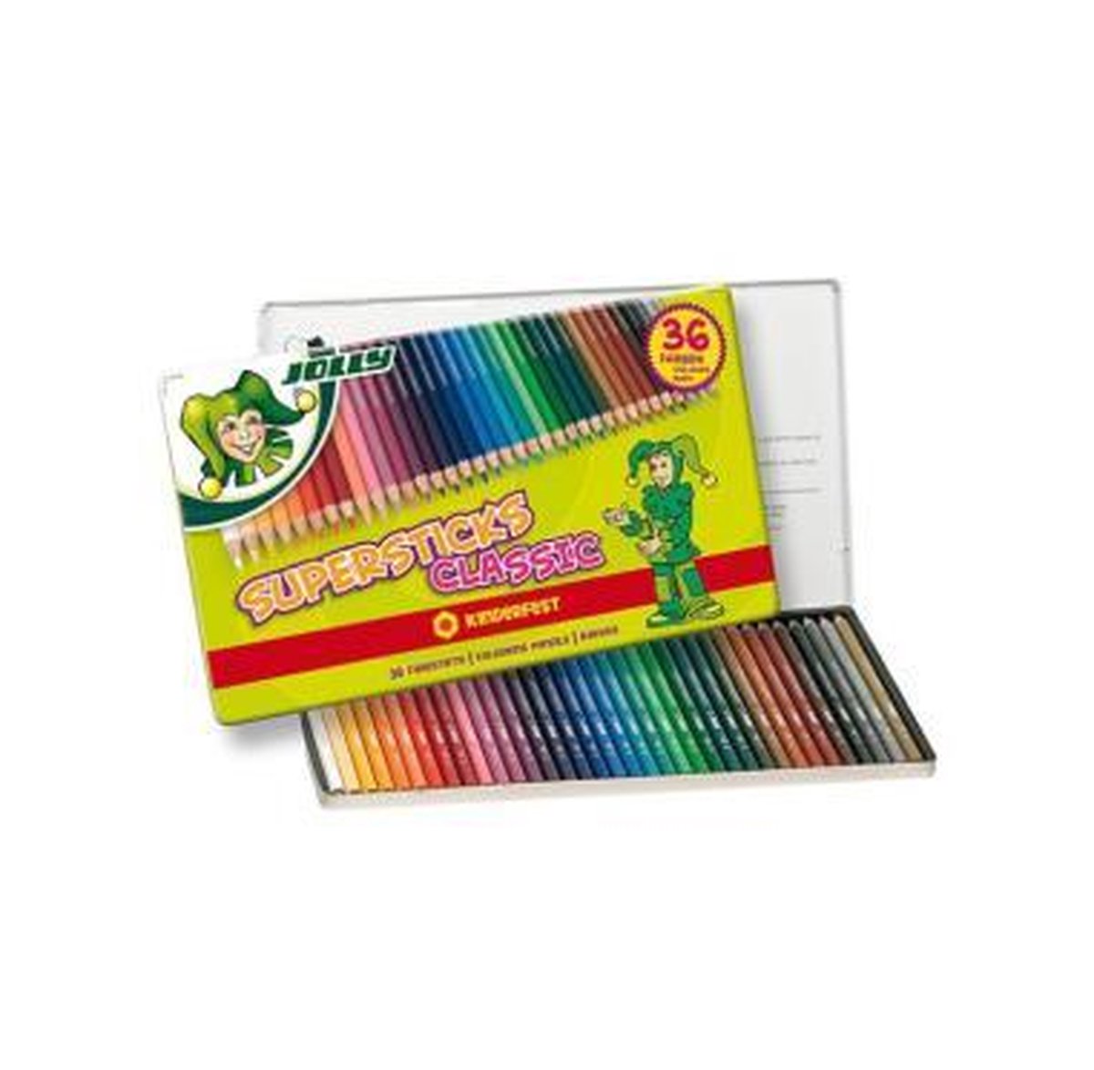 Kleurpotloden van duurzame kwaliteit speciaal geschikt voor kinderen. Vrolijke, volle kleuren en breukvast, 36 stuks, lood, ijzer en nikkel vrij. De zeskantige vorm geeft kinderen een comfortabele grip
