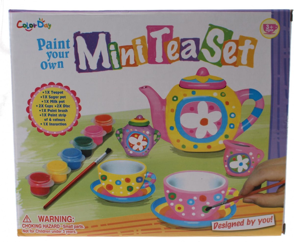 Jonotys theeservies schilderset Beschilder jouw eigen theekan en servies met deze set van Jonotoys. Volg de patronen op de doos of gebruik jouw eigen fantasie en maak de mooiste creaties. Specificaties: Kleur: multicolor Geslacht: junior Materiaal: keramiek Afmetingen verpakking: 22 x 18 x 6 cm (L x B x D) Leeftijd: vanaf 5 jaar Inhoud: 1 Penseel 2 Verfdoosjes met 6 kleuren 1 Theekan 2 Kopjes 2 Schaaltjes 1 Suikerpotje 2 Melkkan Instructies