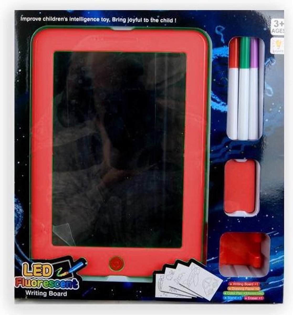 Jonotoys tekenbord Word de nieuwe Picasso met dit tekenbord! De set bestaat uit diverse tekenmaterialen waar je urenlang zoet mee zal zijn. Om een stevig bord te hebben wordt er ook een standaard meegeleverd. Deze set is heel leuk om cadeau te geven of te krijgen! Specificaties: Kleur: rood Geslacht: junior Materiaal: kunststof Afmetingen: 23 x 16 x 2 cm (LxBxH) Leeftijd: vanaf 4 jaar Inhoud: 1 Tekenbord 4 Tekenvellen 3 Kleurpotloden 1 Potlood 1 Gum