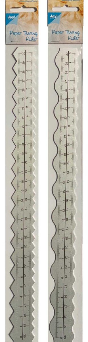 2 verschillende Joycrafts scheurlinealen met aan beide zijde een unieke scheurrand. Met deze scheurlineaal kan je decoratieve randen aan je papier, oplegvel of andere decoratie maken. Het papier maak je nat, met een penseel, om het papier makkelijker en mooier te scheuren. Een mooi product om te gebruiken of kado te geven. 1 Liniaal 30 cm.