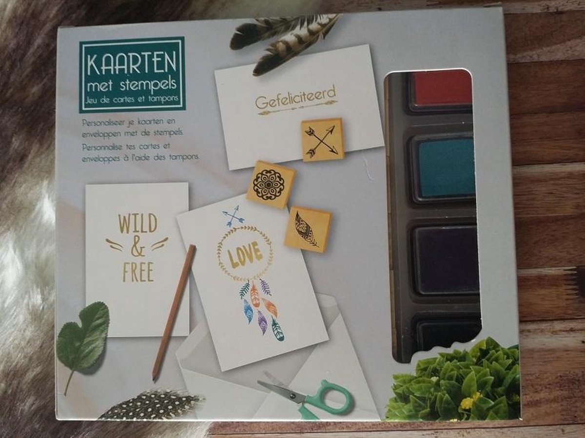 Wil je zelf je kaarten maken? Met dit pakketje kun je zelf leuke kaarten maken met behulp van stempels. Inhoud van de verpakking: 5x kaarten met folie 5x enveloppen 6x stempel 4x stempelkussen