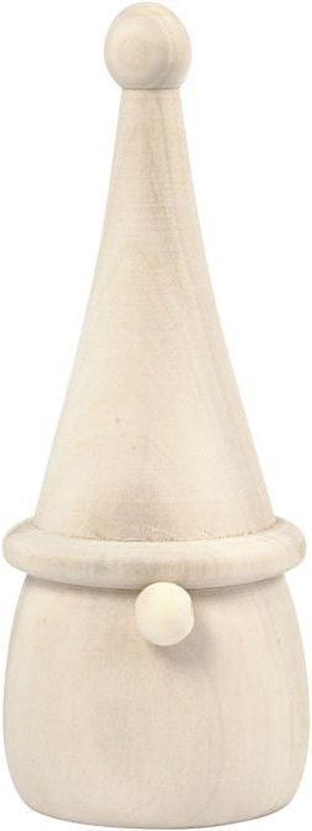 Kabouter van gedraaid, licht hout met neus en puntmuts.