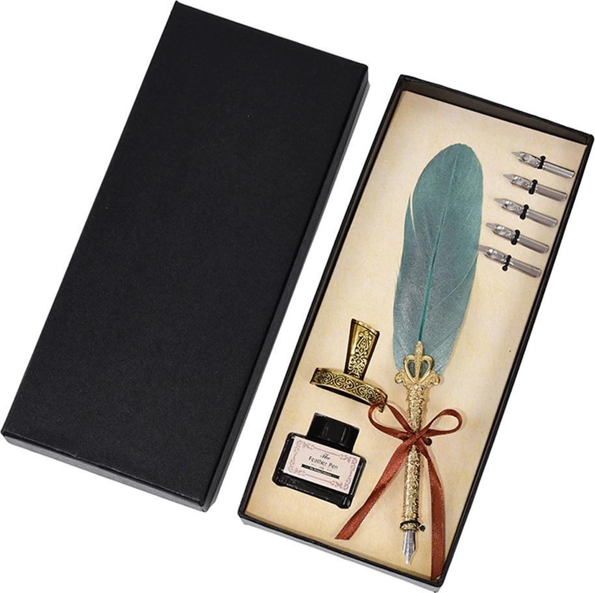 Omschrijving: Deze kalligrafiepen is gemaakt van een natuurlijke veer, comfortabel om vast te houden. Deze kalligrafiepennen zijn elegant en uniek, waardoor het een perfect cadeau is voor uw, vrienden, familieleden en collega's. De set wordt geleverd met 5 vervangende pen punten met verschillende diktes, voor een grote verscheidenheid aan schrijfprojecten. Let op, de inktfles in deze set is leeg Details: - licht, bestand metaallegering - natuurlijke veer - uniek en elegant - 5 vervangende punten