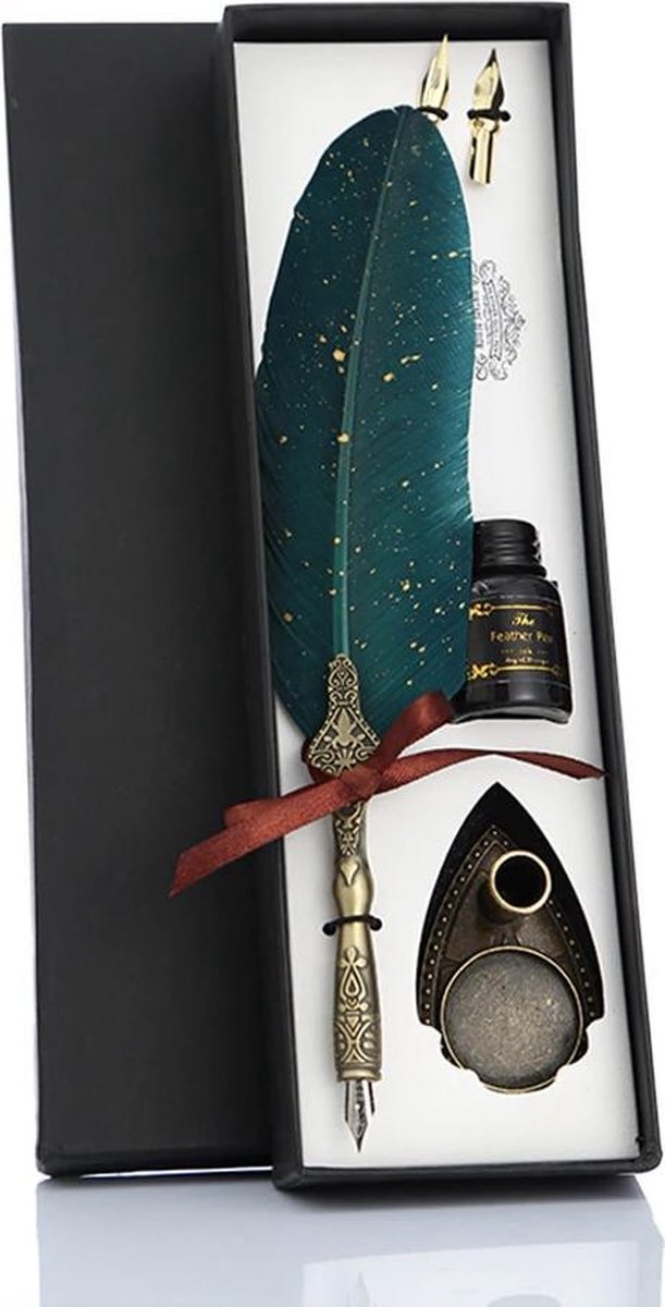 Omschrijving: Deze kalligrafiepen is gemaakt van een natuurlijke veer, comfortabel om vast te houden. Deze kalligrafiepennen zijn elegant en uniek, waardoor het een perfect cadeau is voor uw, vrienden, familieleden en collega's. De set wordt geleverd met 3 vervangende pen punten met verschillende diktes, voor een grote verscheidenheid aan schrijfprojecten. Let op, de inktfles in deze set is leeg Details: - licht, bestand metaallegering - natuurlijke veer - uniek en elegant - 3 vervangende punten