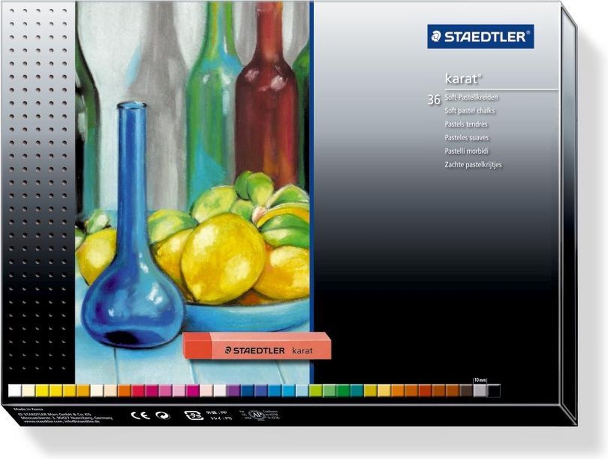 PASTELKRIJT STAEDTLER KARAT ZACHT ASSORTI Studiokwaliteit. Licht echt, breukvast en perfect mengbaar. doos met 36 stuks