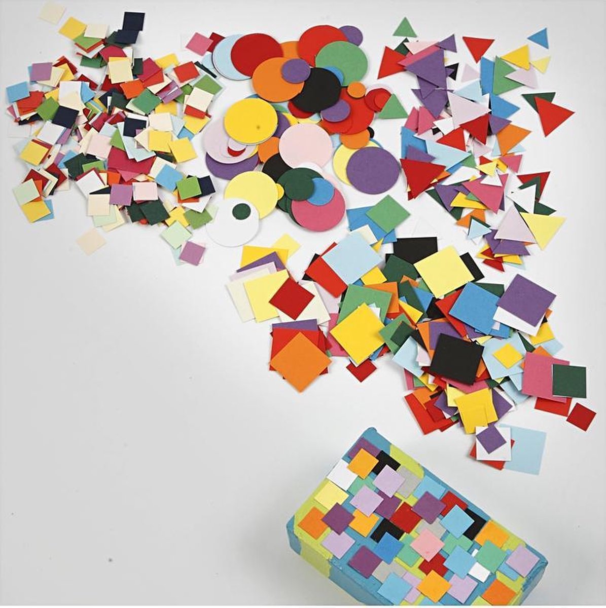 Assortiment van 2 zakken met 4 verschillende karton mozaiek mixen, in diverse vormen (rond, driehoekig, vierkant) en maten.Assortiment van 2 zakken met 4 verschillende karton mozaiek mixen, in diverse vormen (rond, driehoekig, vierkant) en maten.