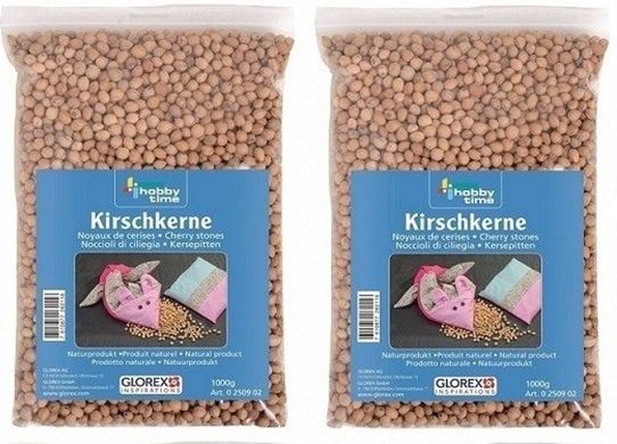 Een zak met kersenpitten, om bijvoorbeeld een zelfgemaakte warmtezak te vullen. Geschikt voor in de magnetron. Inhoud: 2 zakken van ca. 1 kg. Materiaal: echte kersenpitten. Let op: De zak waar het in wordt geleverd is enkel een bewaarzak! U ontvangt 2 zakken van 1 kg.