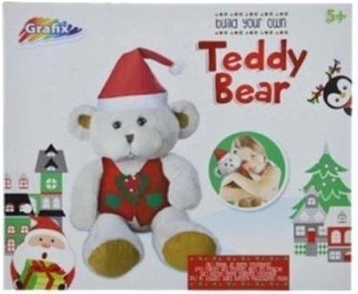 Maak je eigen kerst teddybeer. Inhoud: 1x teddybeer, 1x zak met vulling, 1x plastic naald, stukken vilt en 2x draad. Lengte beer: +- 25 cm. Afmeting verpakking: 30 x 7,5 x 25 cm. Gewicht: 275 gram.