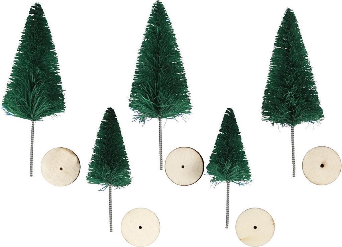 Kleine bomen gemaakt van gedraaid draad en nylon haren. Elek boom wordt geleverd met een kleine, houten staander. Wordt gebruikt voor kleine kerstlandschappen voor bijvoorbeeld in de vensterbank.Kleine bomen gemaakt van gedraaid draad en nylon haren. Elek boom wordt geleverd met een kleine, houten staander. Wordt gebruikt voor kleine kerstlandschappen voor bijvoorbeeld in de vensterbank.