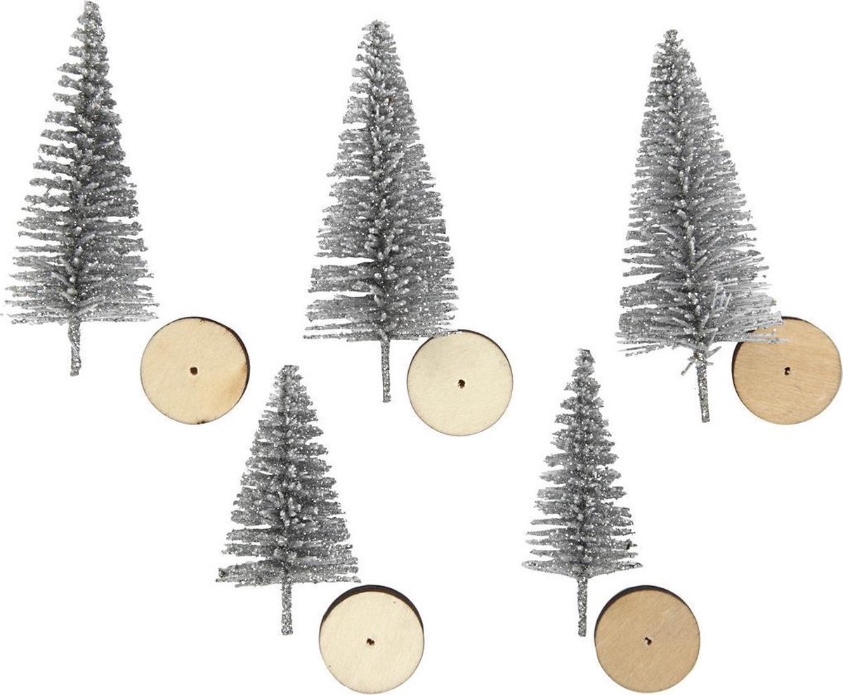 Kerstbomen. zilver. H: 40+60 mm. 5 stuk/ 1 doos