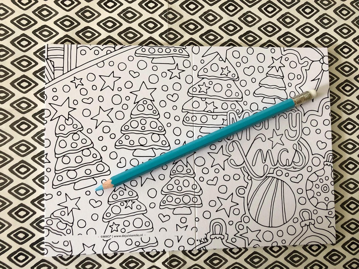 Kleurplaat kaarten voor volwassenen en kinderen. In deze set zitten 12 dubbele kerstkaarten om zelf te kleuren. Uren kleurplezier. Met en zonder teksten. Aan de binnenkant is er voldoende ruimte voor een eigen tekening of een lieve kerst boodschap. De kaarten zijn gedrukt op dik beschrijfbaar papier, enkelzijdig. De kaarten zijn gerild dus vouwen is makkelijk. Ze worden ongevouwen geleverd zodat ze makkelijker in te kleuren zijn. De kaarten worden geleverd met 12 bijpassende enveloppen.