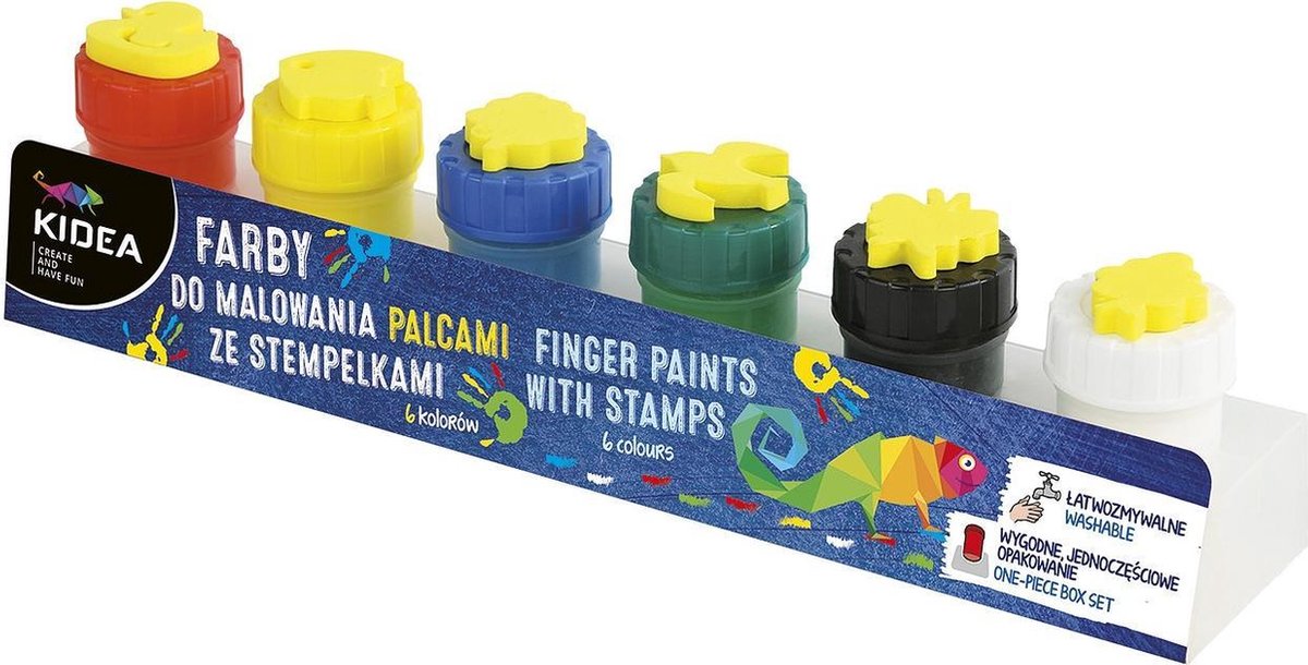 Kidea vingerverf Mix en match met deze vrolijke kleurtjes. Beleef urenlang verf-, schilder-, en kliederplezier met deze vingerverf. Er zitten ook nog superleuke stempels bij in leuke vormpjes. De verf is makkelijk uitwasbaar, dat is ook fijn voor alle papa's en mama's. Specificaties: Geslacht: junior Materiaal: kunststof Kleur: multicolor Leeftijd: van 4 tot 10 jaar Ihoud: 6 Potjes vingerverf met stempel