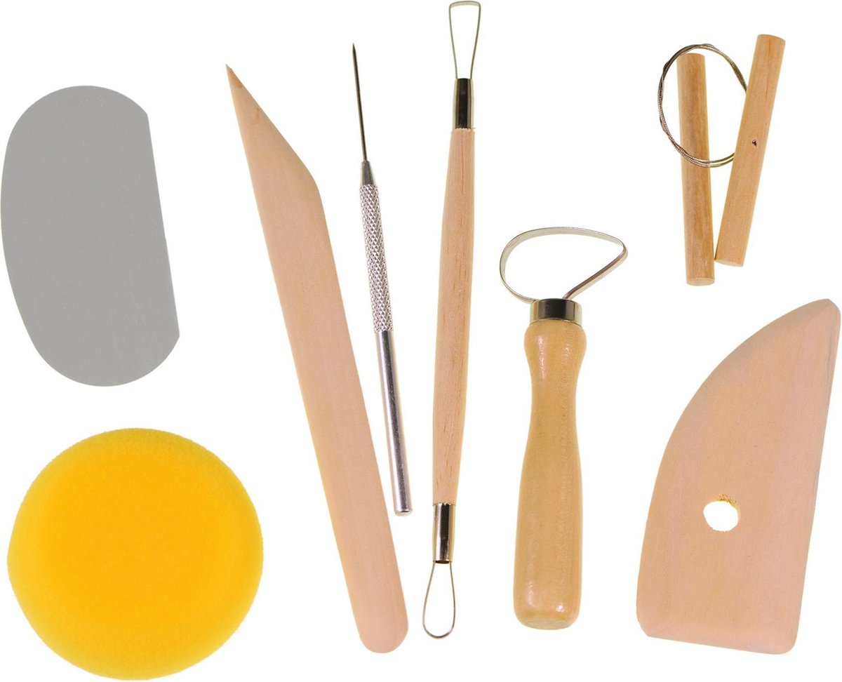 Kids At Work pottenbak gereedschap Liefde voor het pottenbakken groeit met liefde voor gereedschap. Met deze pottenbakkers gereedschap kom je een heel eind. Met een schraper, een kleisnijder, een spons en nog enkele stukken gereedschap kan je allerlei technieken uitproberen en gaandeweg groeit de vaas of de pot onder je handen vandaan. Specificaties: Geslacht: junior Kleur: bruin, grijs Materiaal: hout, staal Leeftijd: vanaf 6 jaar Inhoud: 1 Set gereedschap